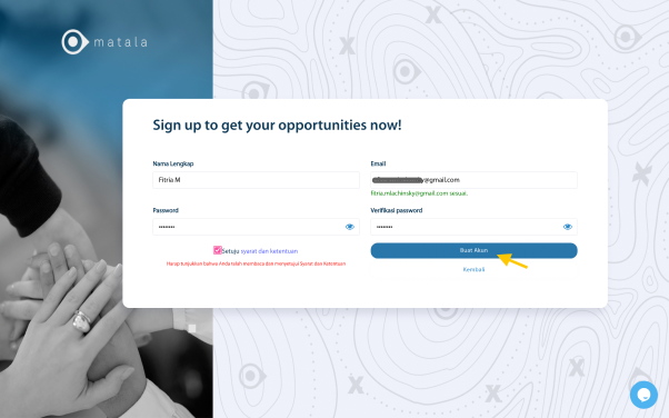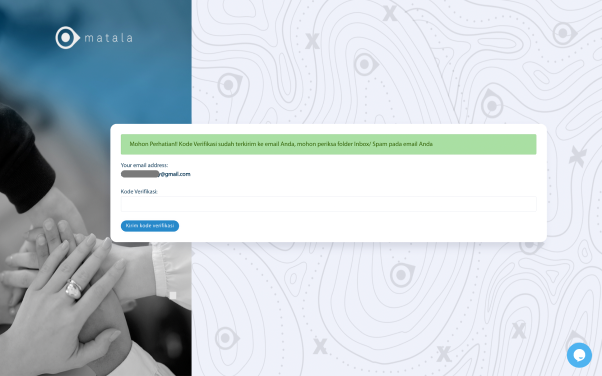 Setelah berhasil mendaftar, Matala akan mengirim kode verifikasi pada email Anda