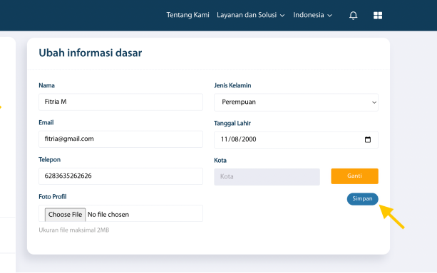 Setelah berhasil melengkapi seluruh data diri, klik Save